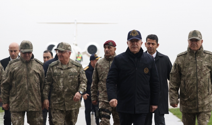 Bakan Akar, beraberindeki komutanlarla Suriye sınırında inceleme ve denetlemelerde bulundu