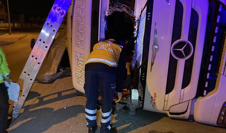 İhbar üzerine olay yerine polis sağlık ve itfaiye ekipleri sevk edildi. Yan yatan tır içerisinde sıkışan sürücü İlyas Ç. İtfaiye ekiplerinin müdahalesi ile sıkıştığı yerden çıkarıldı.