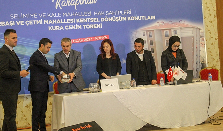 Konya'nın Karapınar ilçesinde, Selimiye ve Kale mahallelerine Kentsel Dönüşüm ve Gelişim Projesi kapsamında TOKİ tarafından yapılan 185 konutun hak sahibi noter huzurunda yapılan çekilişle belirlendi.