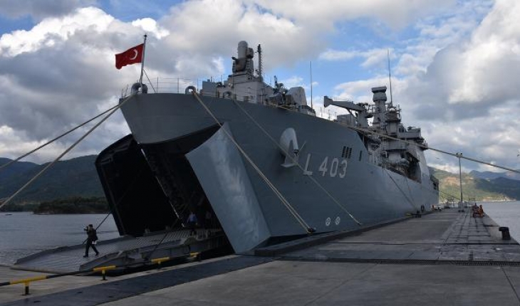 Muğla'nın Marmaris ilçesindeki Aksaz Deniz Üs Komutanlığında TCG Sancaktar gemisinde gerçekleştirilen brifingte, sürdürülecek görev hakkında sunum yapıldı.